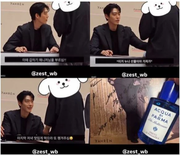 在近日《许愿吧,精灵》的签名会上,他的一个举动再度引发网友热议。在一名粉丝问到时,金宇彬毫不犹豫地从随身包包中拿出他本人爱用的香水送给粉丝,让现场气氛瞬间升温,并引发网路热议。